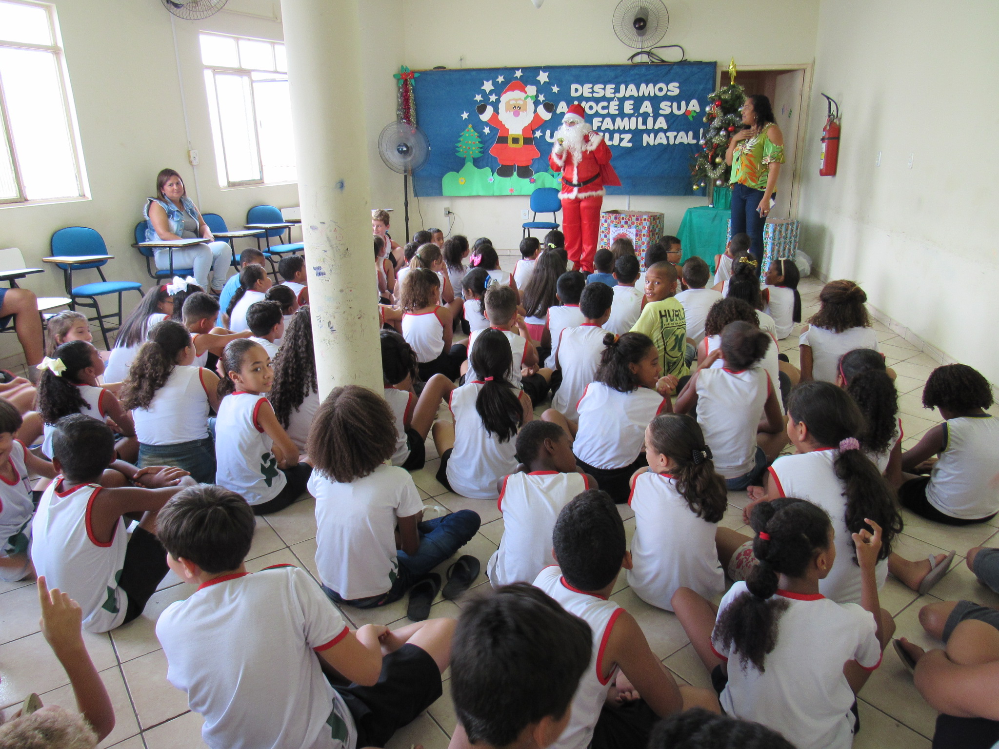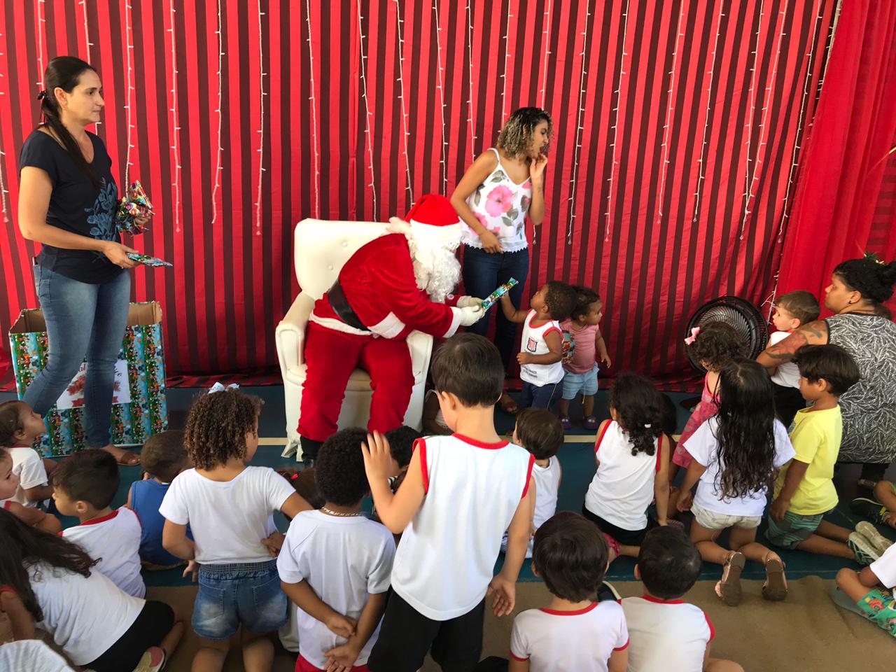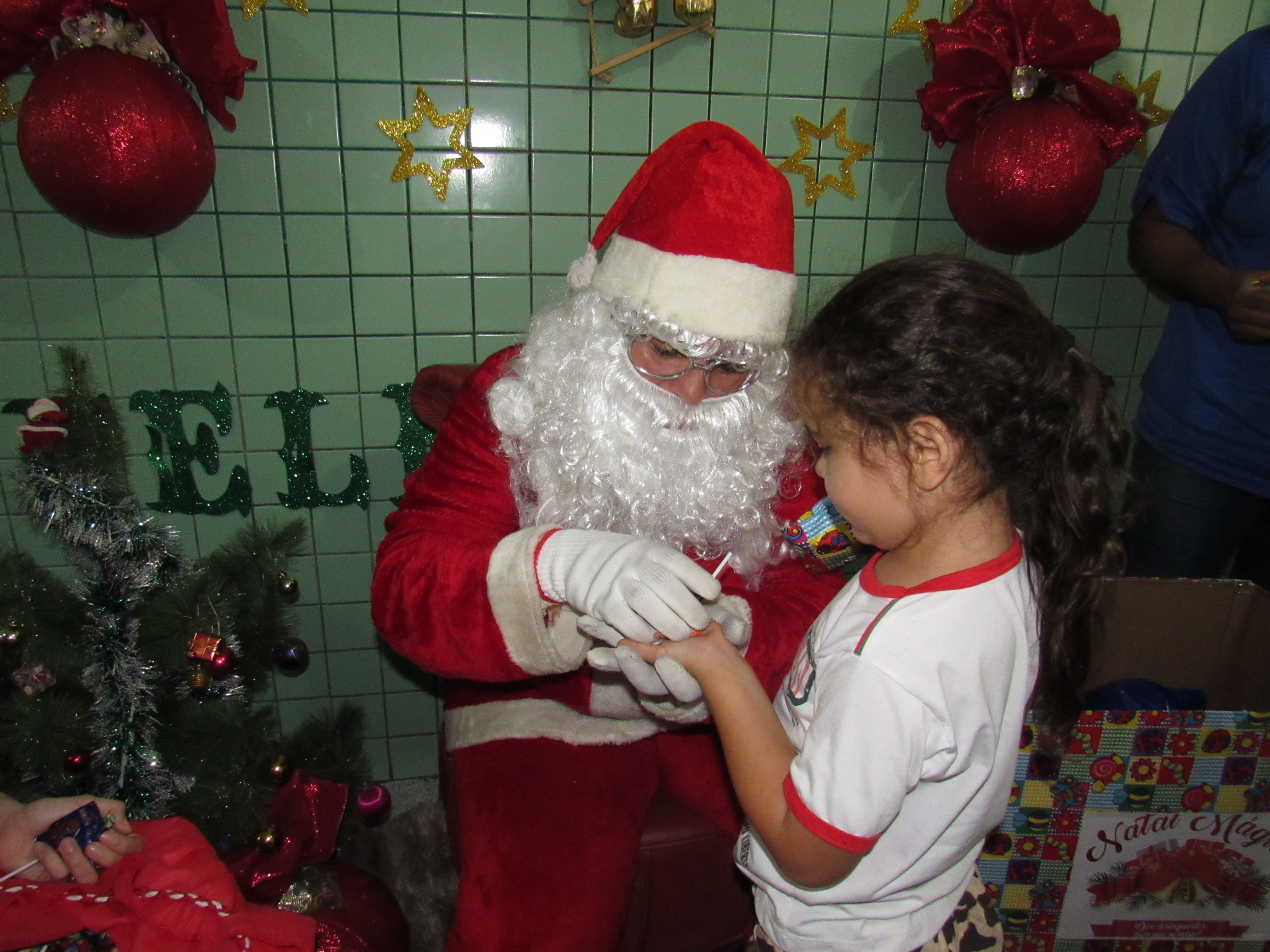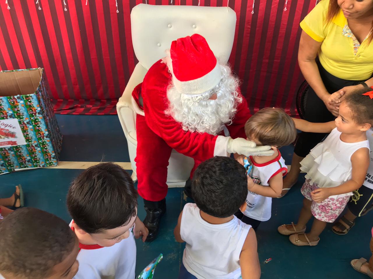 Primeira escola visitada pelo Papai Noel, para a entrega dos presentes do Projeto Natal Mágico.