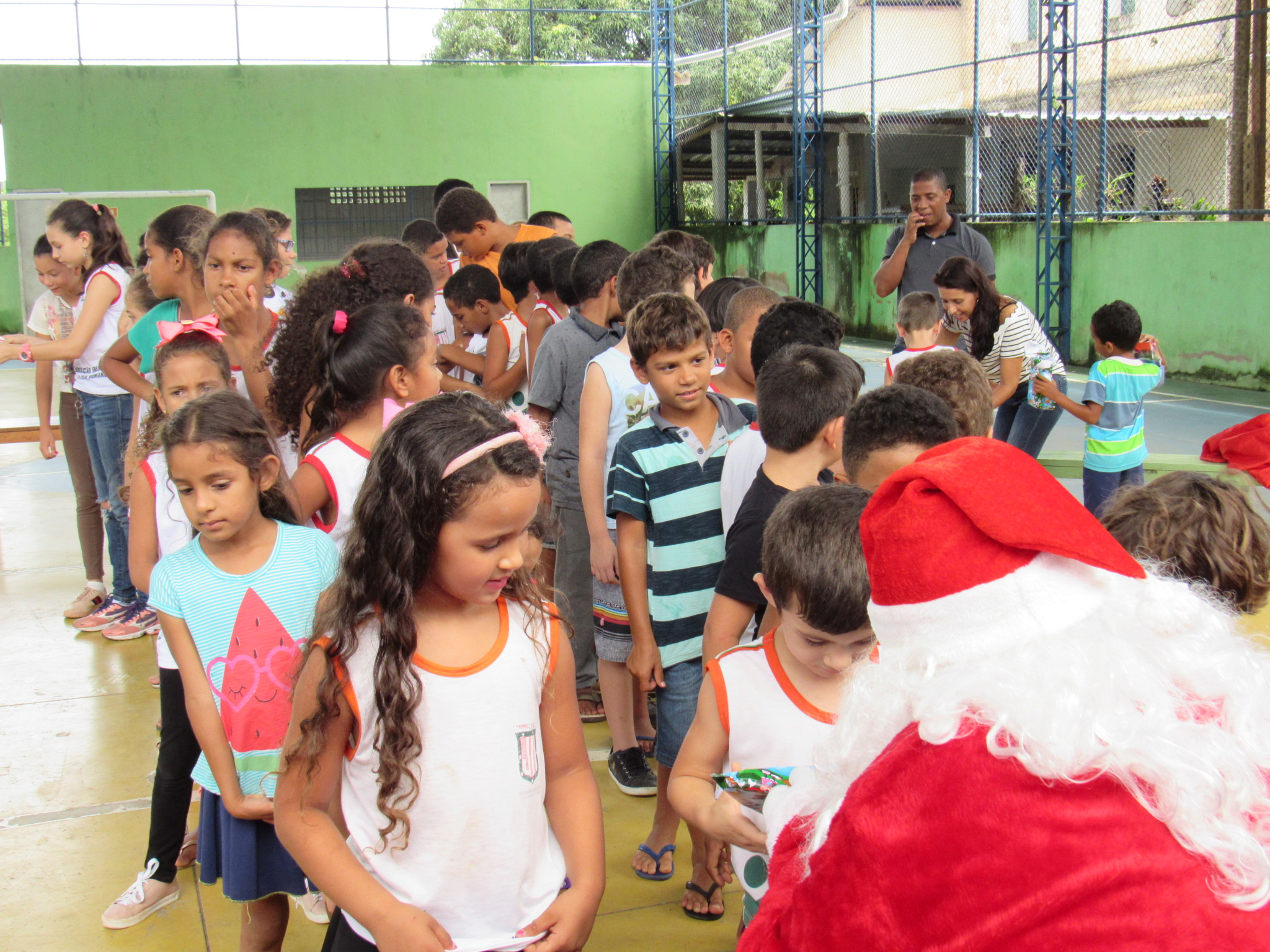 Primeira escola visitada pelo Papai Noel, para a entrega dos presentes do Projeto Natal Mágico.