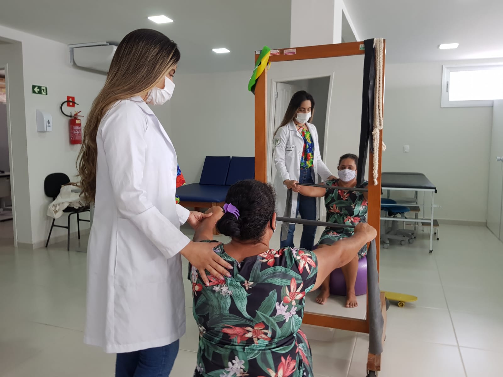 A paciente Aucilene do Nascimento Castro, 58, faz a terapia de grupo e achou uma ótima ideia. “Estou gostando muito. Dá disposição e a gente se diverte. As meninas são muito pacientes e prestativas conosco. Quando fazemos as atividades elas perguntam se está doendo algum lugar, se a gente está sentindo o esforço, se dá para continuar”.