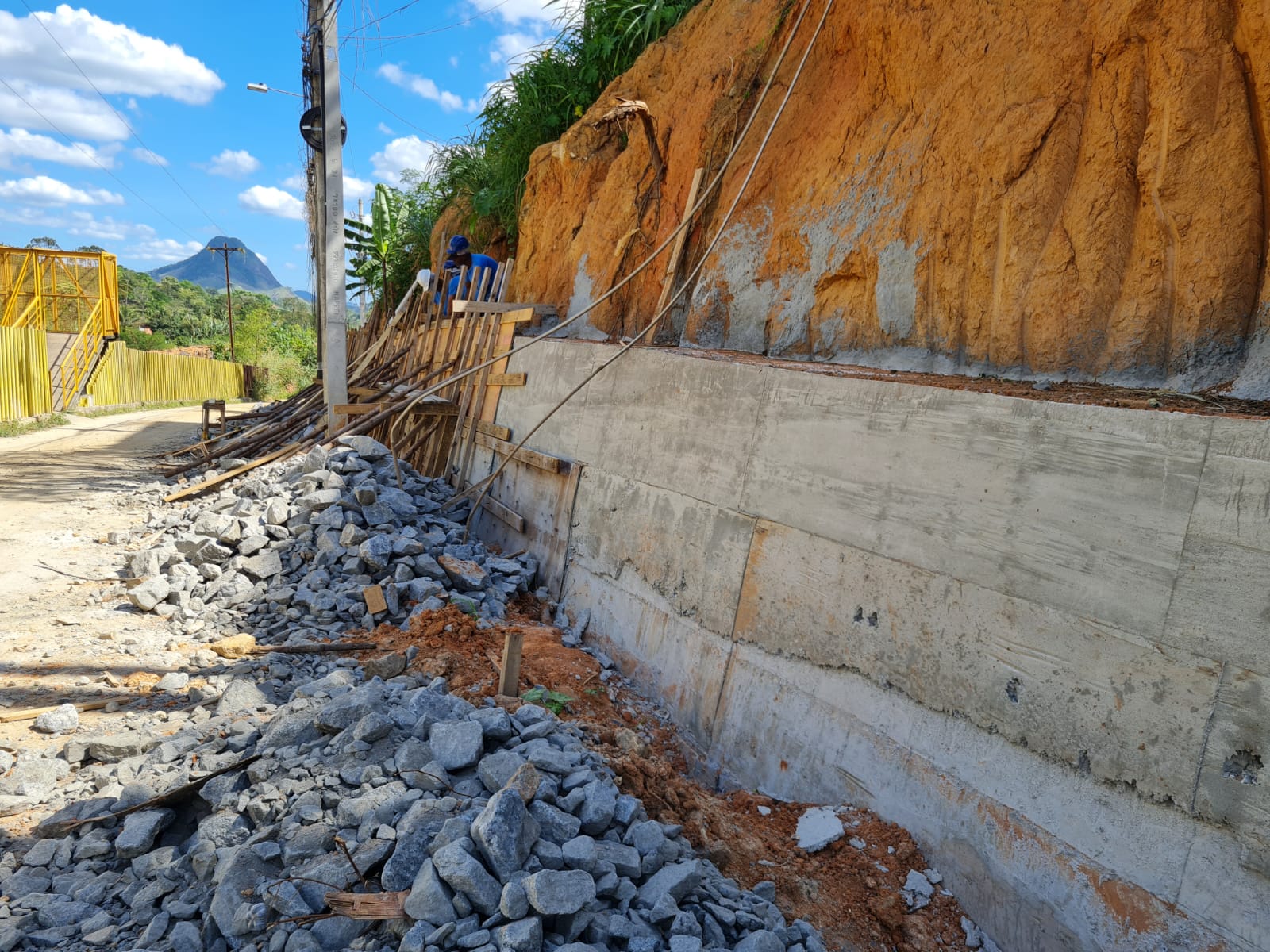 A Prefeitura de João Neiva está construindo um muro de contenção na estrada da estação, em Piraqueaçu, com o objetivo de proporcionar mais segurança aos moradores, pedestres e motoristas, pois a área apresentava risco de desmoronamento do talude, o que poderia afetar as casas e a circulação no local.