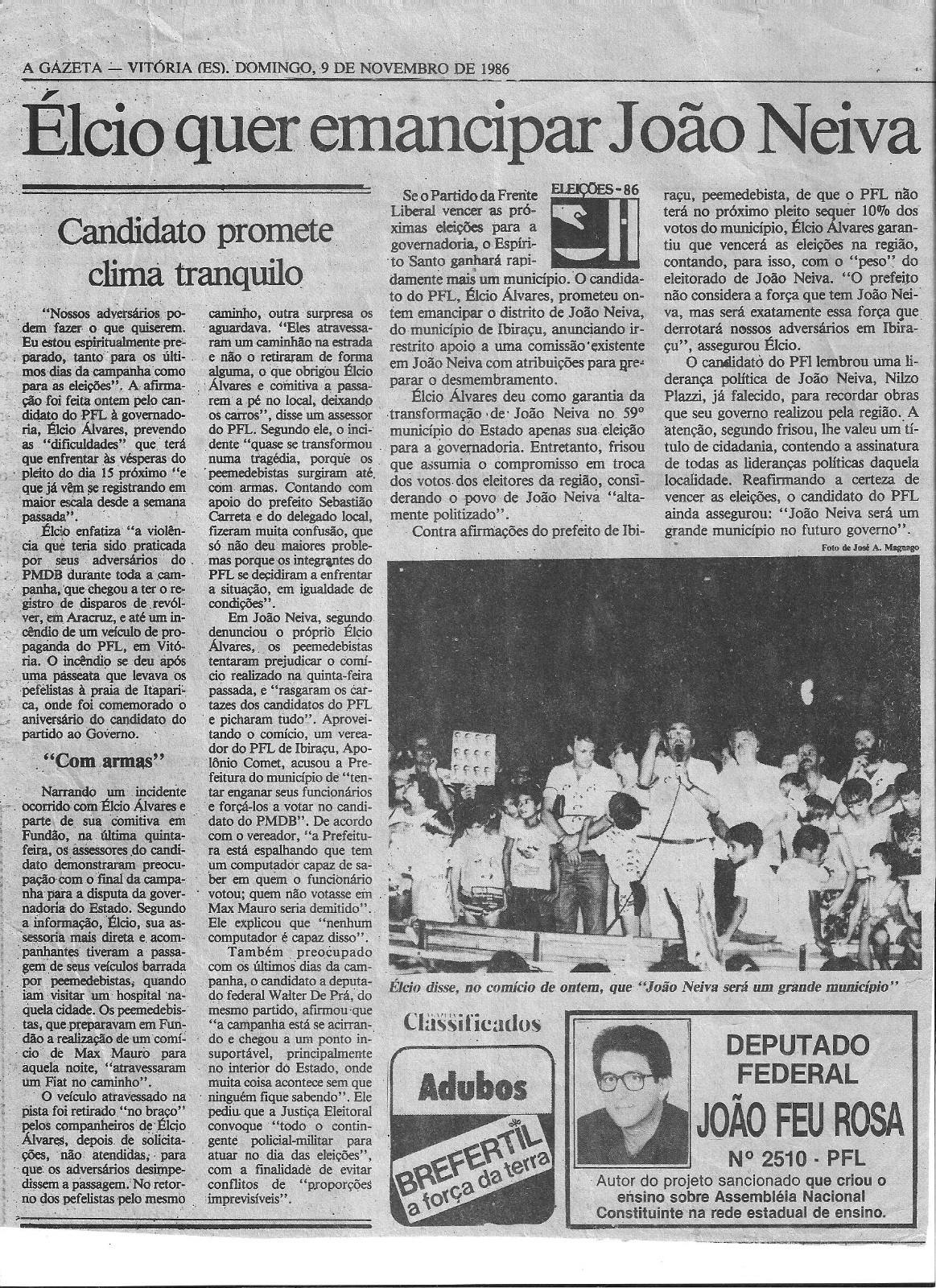 Neste domingo (11) o município de João Neiva comemorou 37 anos de Emancipação Política. A data marca um capítulo fundamental na história da cidade, que até 1988 era distrito de Ibiraçu. A luta pela autonomia administrativa, no entanto, começou décadas antes e envolveu diversos líderes políticos, representantes da sociedade civil e movimentos populares que não mediram esforços para garantir que João Neiva tivesse sua própria identidade e governo.