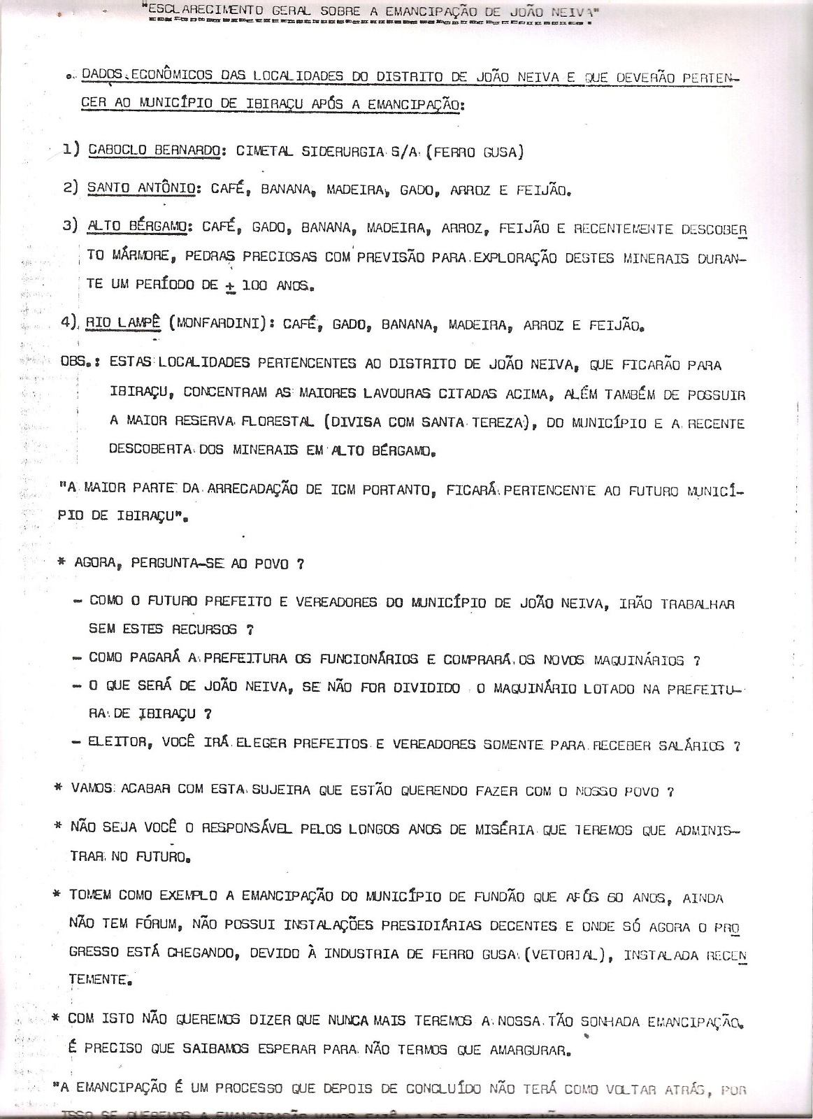 Para Apolônio, que acompanha de perto os registros da cidade, aquele momento simbolizou muito mais que uma mudança administrativa. “Foi um divisor de águas e a realização de um sonho da população de ver transformado o distrito de João Neiva em cidade, que representava o sonho de autonomia e progresso. A população entendeu que ali nascia não só um novo município, mas uma nova identidade, forjada com união e coragem”.